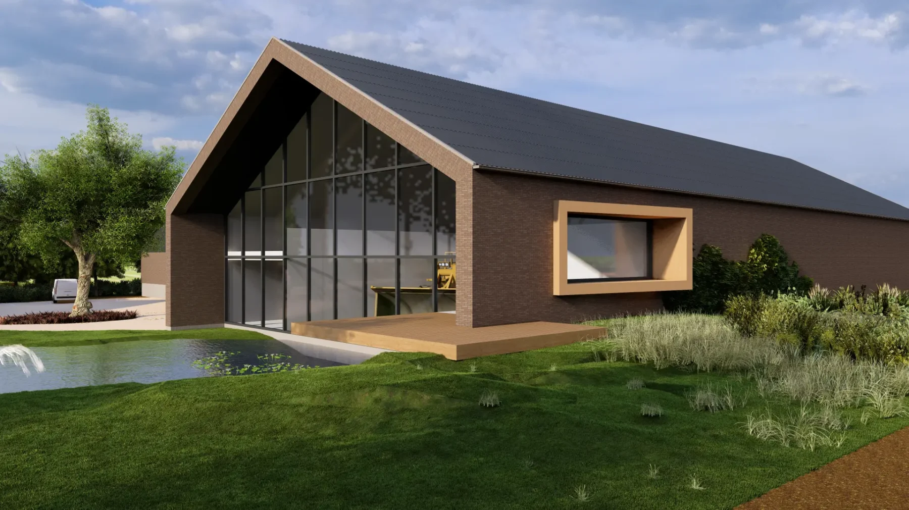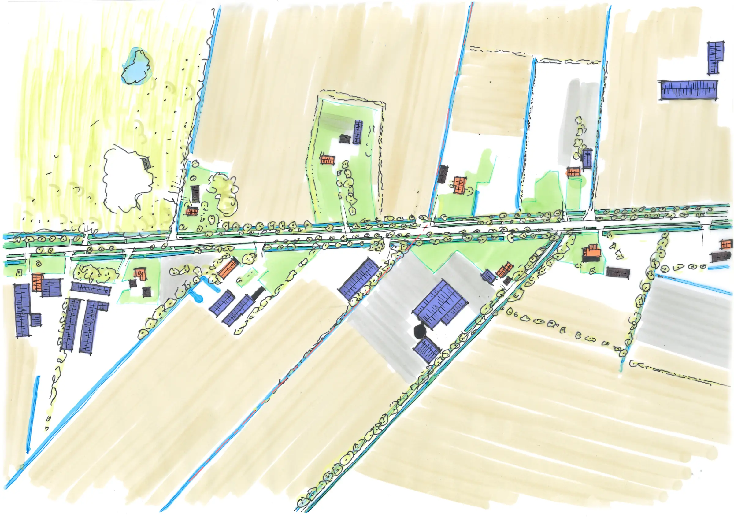 Het plan was aanvankelijk om het vleesvarkensbedrijf uit te breiden naast de activiteiten van nevenbedrijf Hama Industry. Door ambitie en innovatieve ontwikkeling ontstond de visie om de locatie volledig te gaan bestemmen voor Hama Industry, specialist op gebied van hoogprecisie grondverwerking. Vergaande technische ontwikkeling en automatisering in deze sector vraagt, naast de machines zelf, om een omgeving waarin opgeleid, getraind en geoefend kan worden. Het plangebied van 9500 m² wordt getransformeerd tot een regionaal betekenisvolle innovatiehub waarin technologie, landschap en duurzame energieconcepten samenkomen. Gebouwen op de campus voor R&D, assemblage, kantoren, werkplaats, showroom, machineopslag, onderwijs- en trainingsruimten, vergaderfaciliteiten en innovatie-labs omsluiten een buitenterrein met demonstratie- en oefenzones, waterbergingen met natuurvriendelijke oevers en een publieke pleisterplaats voor passanten.