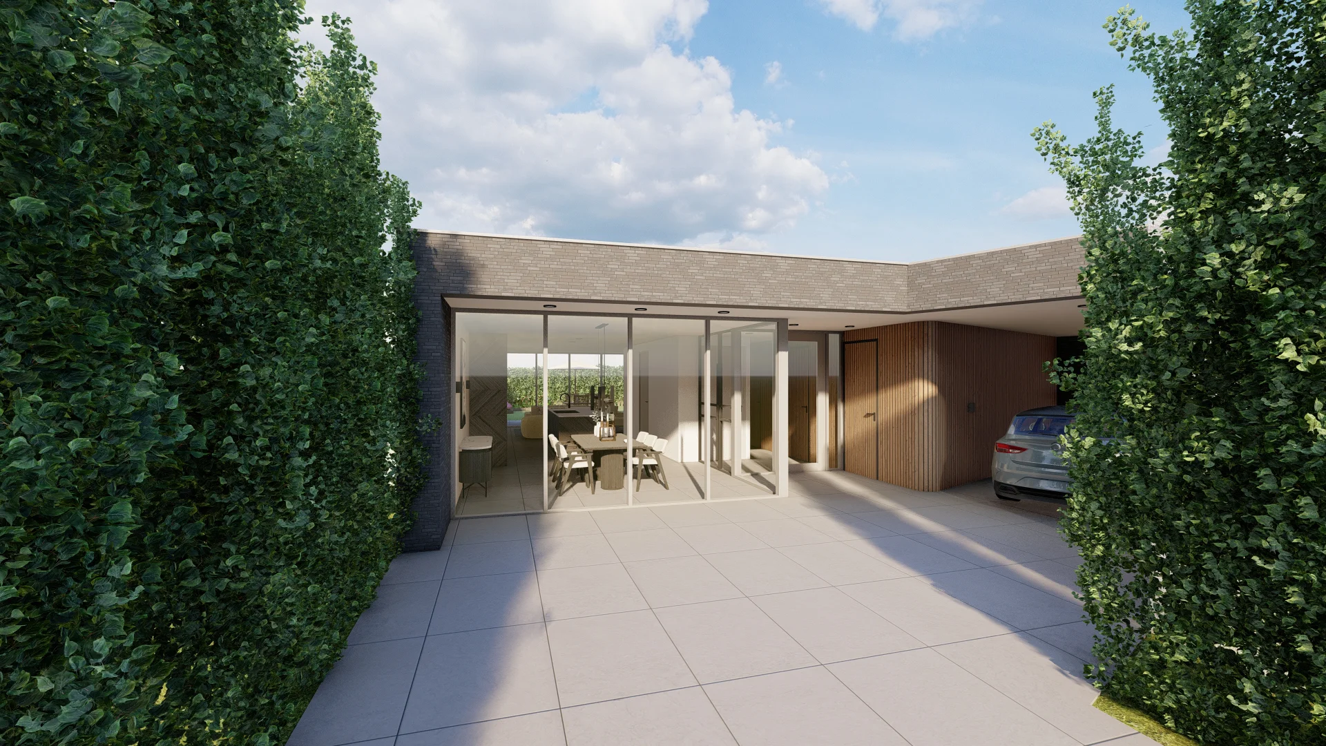 De toekomstbestendige bungalow is ontworpen op een afgesplitst deel van een groot perceel aan de Putwei 4 te Hilvarenbeek. De huidige woning is, na het uitvliegen van de kinderen, te groot geworden. Het inbreiden op de eigen locatie met een levensloopbestendige bungalow biedt de opdrachtgevers de mogelijkheid te blijven wonen op de huidige locatie. Inbreiden met een levensloopbestendige woning sluit aan bij het gemeentelijk beleid om binnen de dorpskern woningen voor doelgroepen te stimuleren. De ligging van het overhoekse perceel heeft een dubbele straatoriƫntatie. De nieuwe bungalow richt zich met veel glas op de woonstraat Putwei. Een volledig rolstoeltoegankelijke plattegrond ontwikkelt zich naar achter op het perceel en garandeert rustig en besloten wonen met veel ruimtelijkheid en licht. Vanwege de ingeklemde situatie en een gebrek aan bouwterrein wordt een bouwsysteem gekozen dat zoveel mogelijk op locatie geassembleerd kan worden. In de technische uitwerking wordt dit verbonden met de wensen van de opdrachtgevers en duurzaamheidsambities van gemeente Hilvarenbeek.