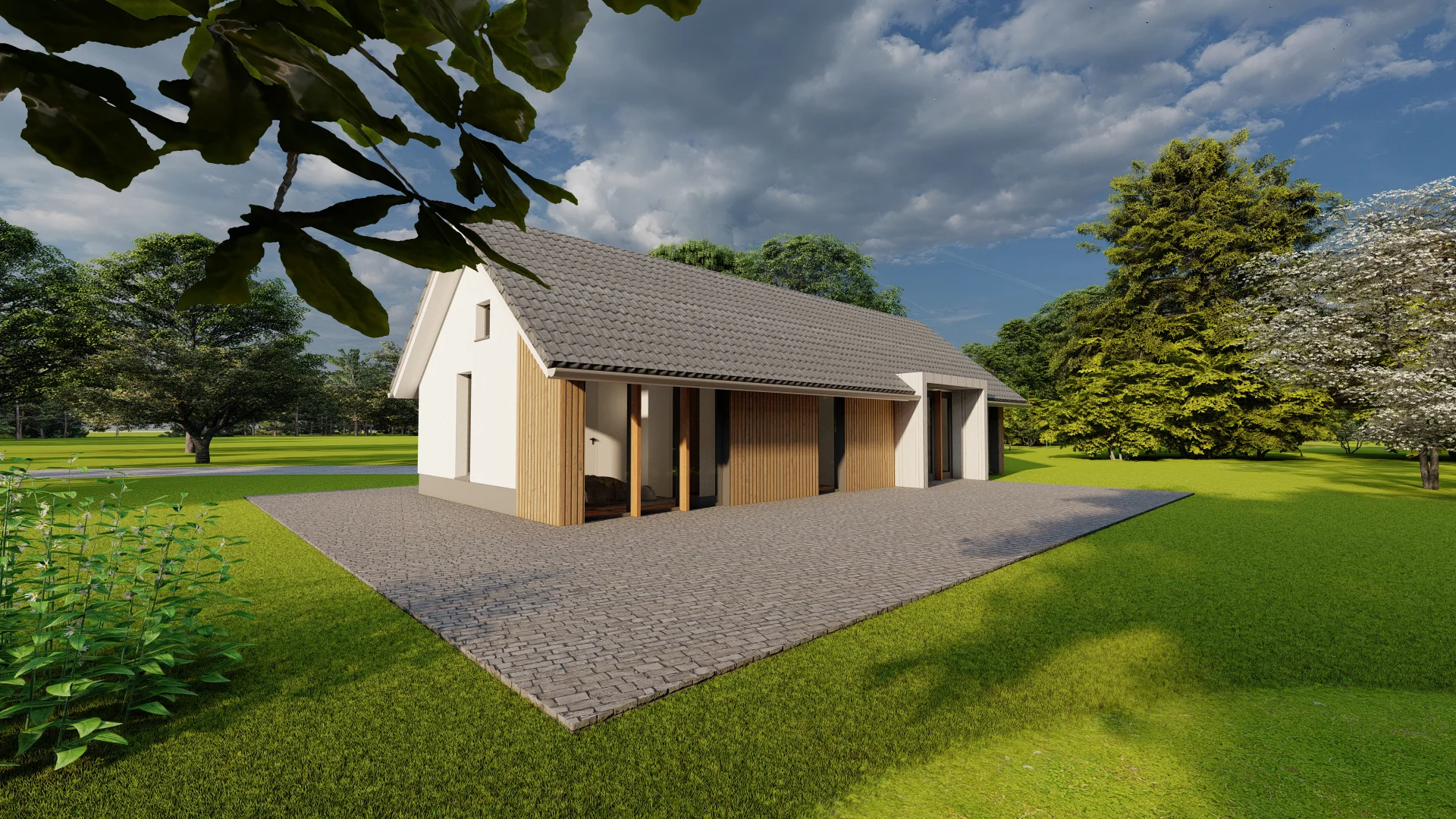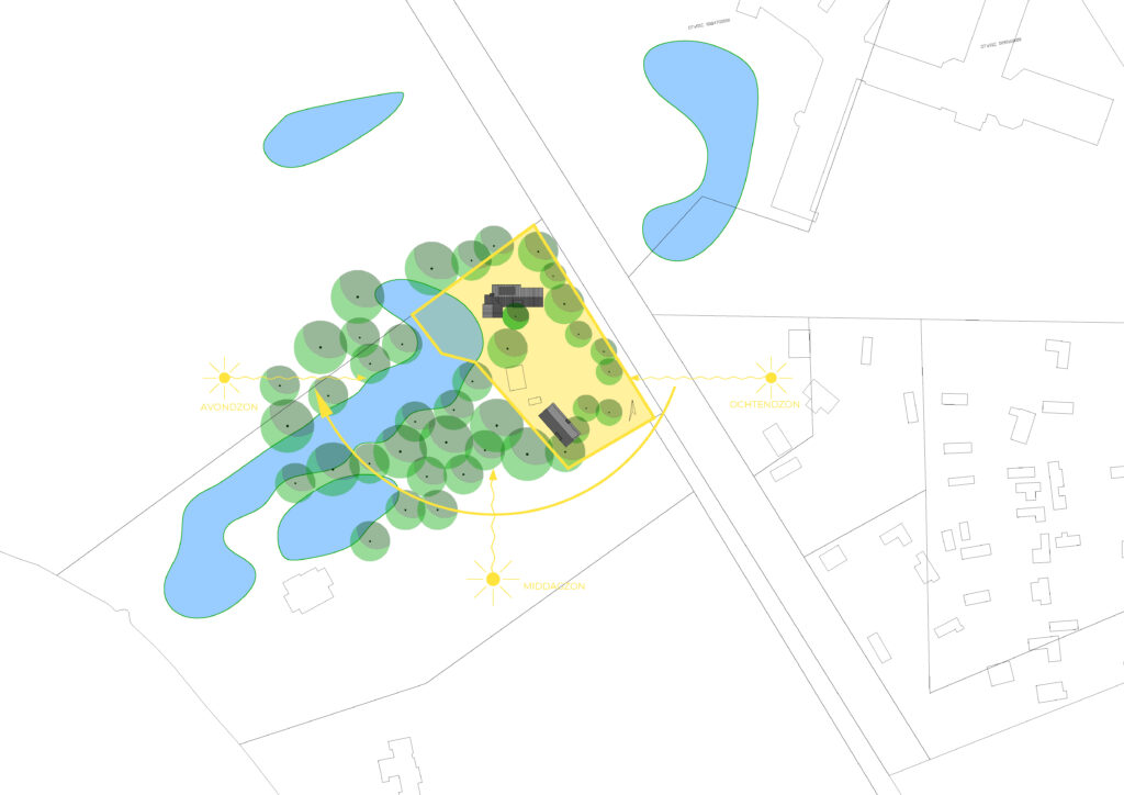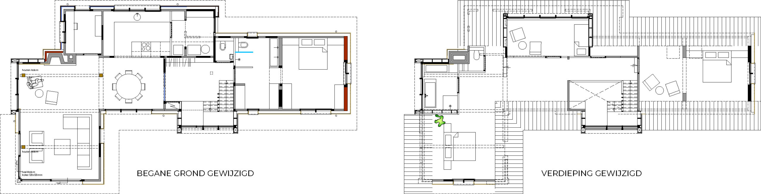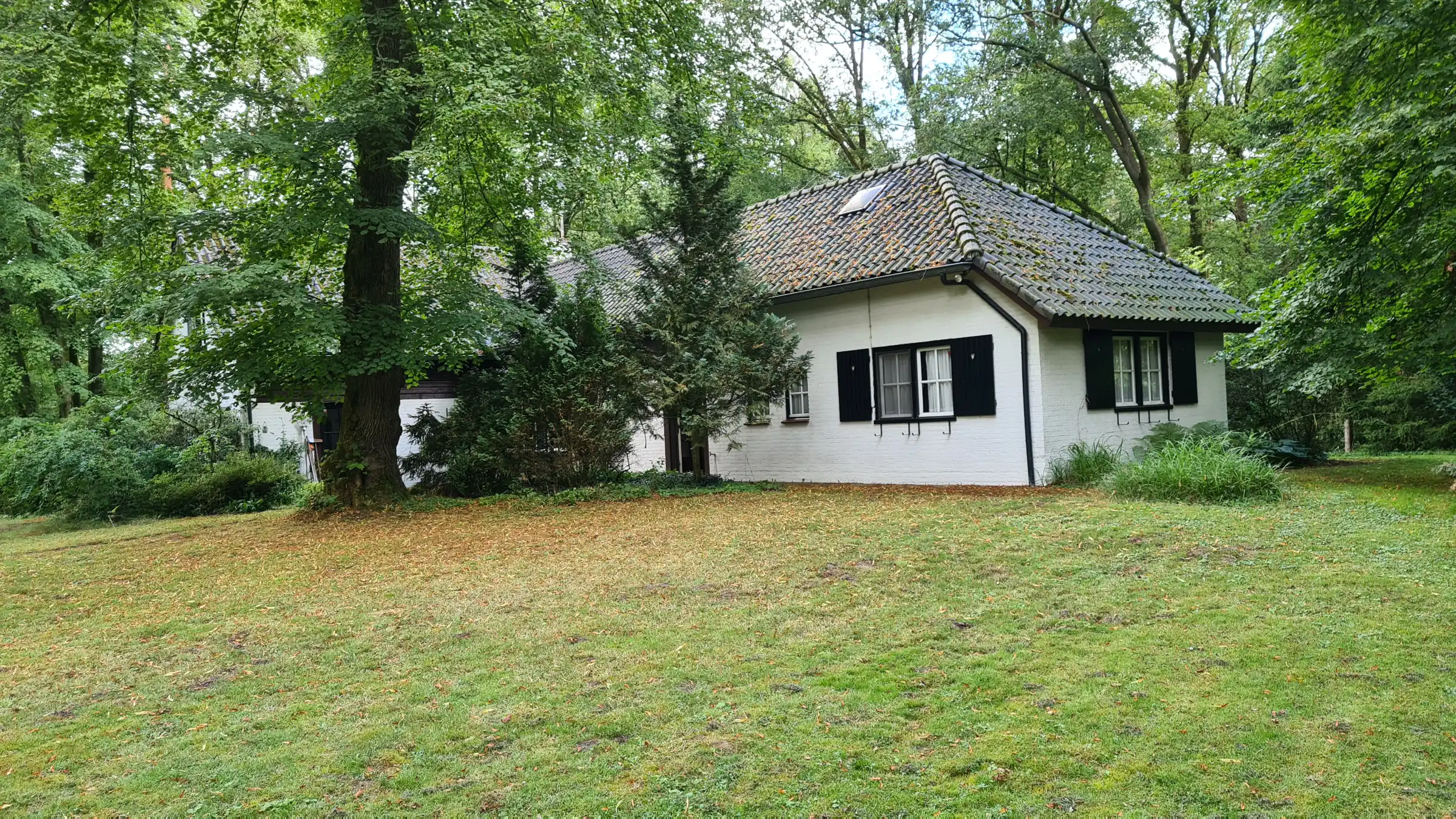 De vrijstaande villa aan de Oirschotsebaan 2 te Oisterwijk is prachtig gelegen in de Oisterwijkse bossen. Het royale landgoed draagt de naam “Nooitgedacht”. Aan de Oirschotsedijk staat de naam aangeduid op de metselwerk penanten en het ontwerp dateert uit de jaren ’60 van de vorige eeuw. De oorspronkelijke villa is te typeren als een bescheiden landhuis. Bijzondere stijlkenmerken met houten details, gevelbekledingen, een gemetseld rookkanaal, houten raamkaders en een spel van samengestelde daken bepalen het architectonisch beeld. Het kleurenpalet van witte gevels, donkere kozijndetails en daken van grijze keramische pannen karakteriseren de woning en geven de villa een “eigen plek” in het bos. De ambitie van de opdrachtgevers, om de prettige “look & feel” van de woning als uitgangspunt te nemen voor het ontwerp, is vertaald in het plan. De opgave bestaat uit het restylen en verbouwen van de hoofdbouw en het realiseren van een mantelzorgwoning op het perceel. In het ontwerp is de begane grond van de bestaande woning verlaagd om hoogte te winnen. In een geheel nieuwe gevelbekleding van mineraal stucwerk en hout is met nieuwe gevelopeningen op een eigentijdse manier aangesloten bij de oorspronkelijke uitstraling van de woning.