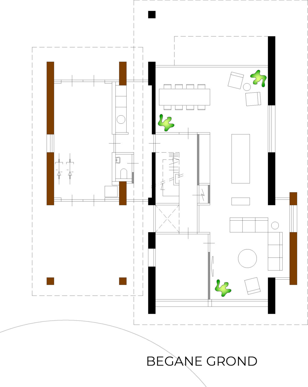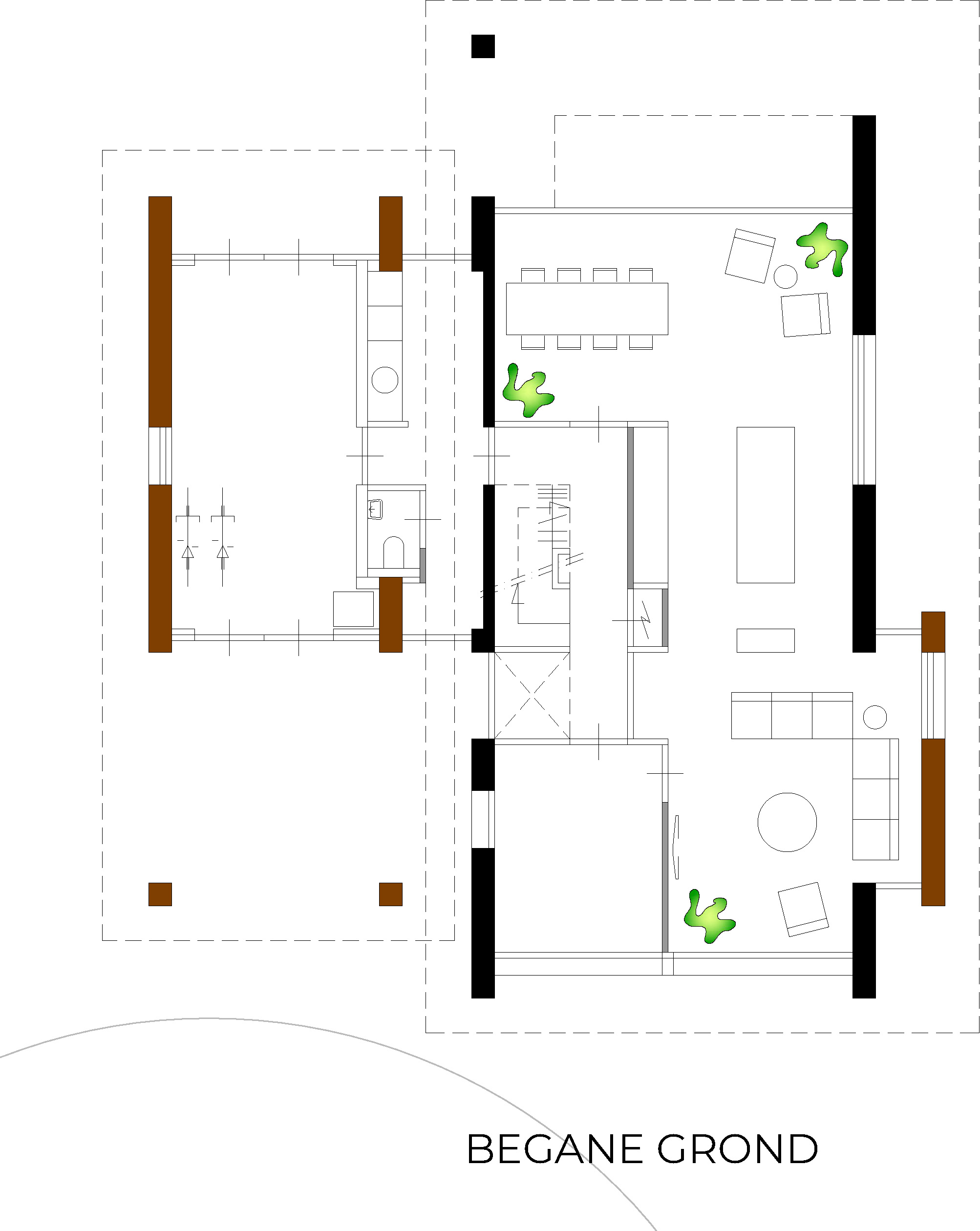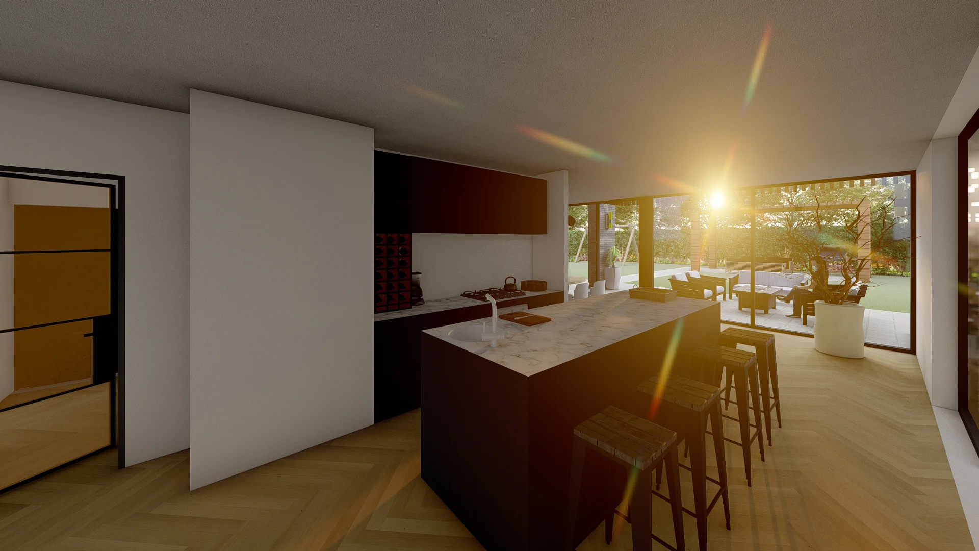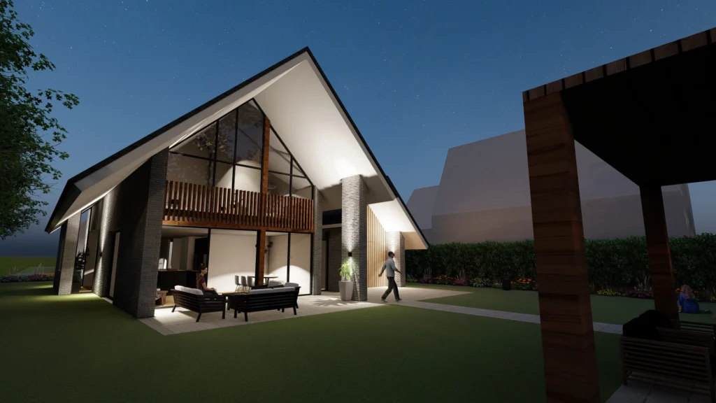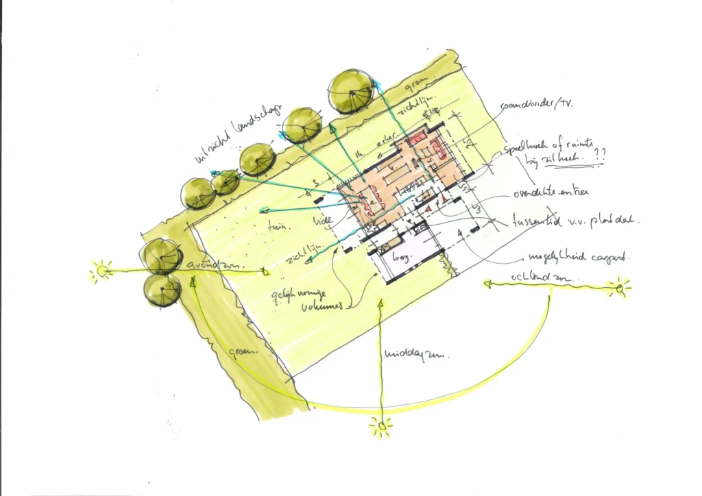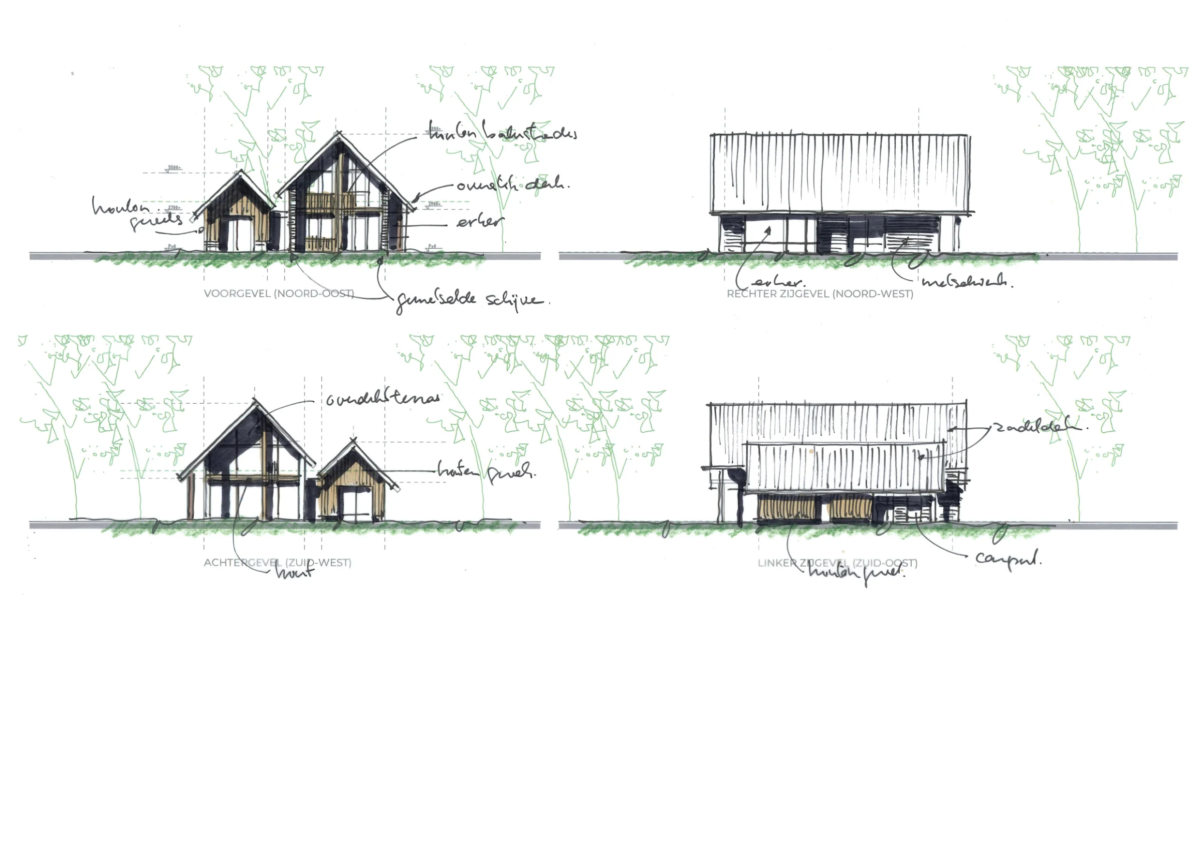 Op een perceel in het landelijk gebied, net buiten de dorpskom van Diessen, is een vrijstaande woning ontworpen. De Ruimte voor Ruimte verkaveling waarin de woning ligt krijgt een karakter van een boerenerf. De vier grote percelen worden via één inrit vanaf de Westerwijk ontsloten. De uitstraling die het totaalplan daardoor krijgt geeft een beeld van samenhang en in zekere mate ook collectiviteit. Alle woningen dienen te worden uitgevoerd in natuurlijke aardse materialen en kleuren. Uitgangspunt voor het architectonisch ontwerp was een voorkeur voor werken met houtconstructies vanuit duurzaamheid. Ontwerpoverleg met initiatiefnemers heeft geleid tot een ruimtelijke schuurwoning met een gekoppeld bijgebouw. Woning en bijgebouw hebben een identieke uitstraling. Verbindingen van binnen naar buiten door muren en overstekken, samen met houten details, geven het ontwerp een eigen karakter.