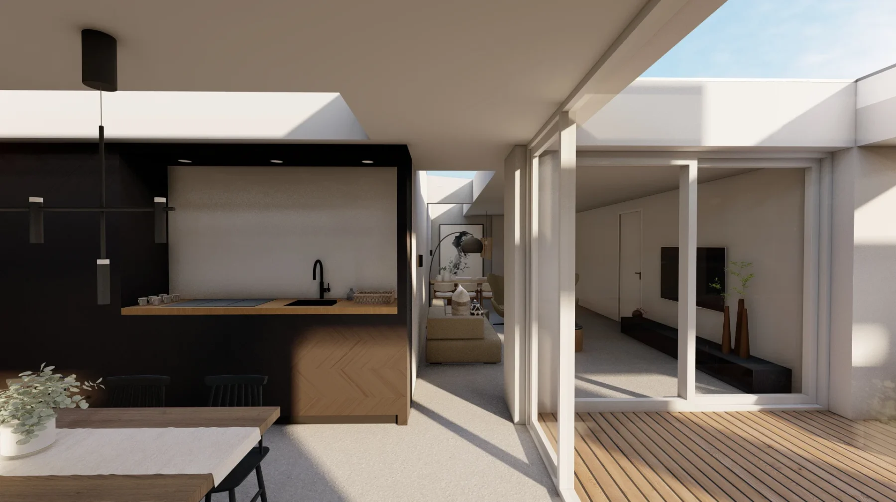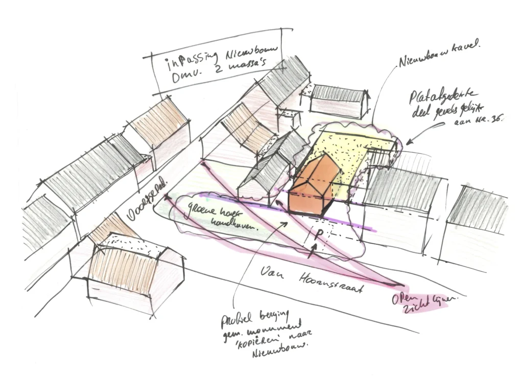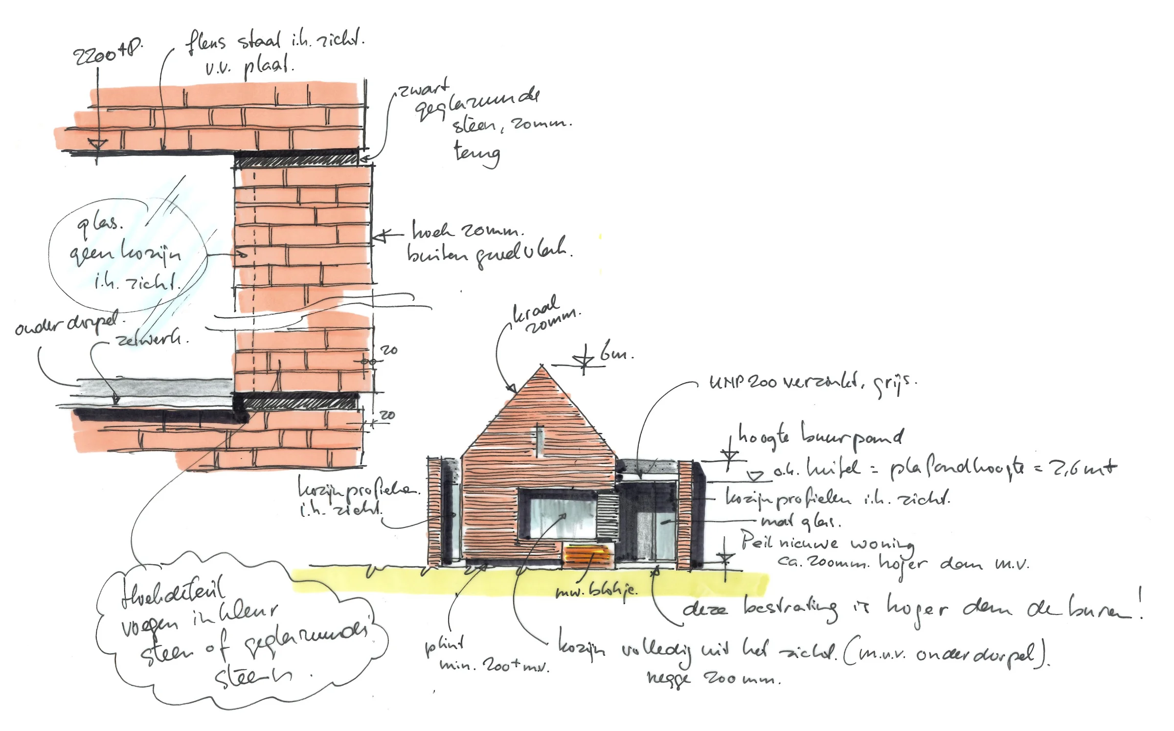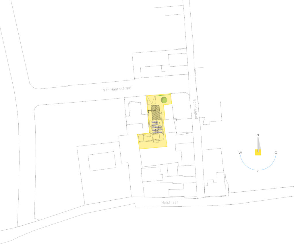 Met het verwerven van het perceel Voortsepad 11 ontstaat de mogelijkheid om in de tuin van Voortsepad 7, aan de zijde van de Van Hoornstraat, een toekomstbestendige bungalow te realiseren. De locatie ligt in de cultuurhistorische kern van Hilvarenbeek. Daarom vraagt de opgave om maatwerk. In overleg met Commissie Ruimtelijke Kwaliteit en Monumenten is vastgesteld dat inbreiding mogelijk is mits die aansluit bij het cultuurhistorische karakter van de plek. Historisch onderzoek en vormanalyses van de stedenbouwkundige situatie hebben geleid tot een architectonisch concept van een “Voorhuis” en een daarachter geplaatst laag volume. Het voorhuis voegt zich bescheiden tussen de bestaande bebouwing in de straat. Dieper in de tuin ontwikkelt zich de plattegrond van de bungalow. De stedenbouwkundige structuur heeft geleid tot een kleinschalige, ambachtelijk woning in één kleur baksteen, zorgvuldig gedetailleerd met ambachtelijke materialen. Een moderne woning die zich bescheiden voegt in de context.