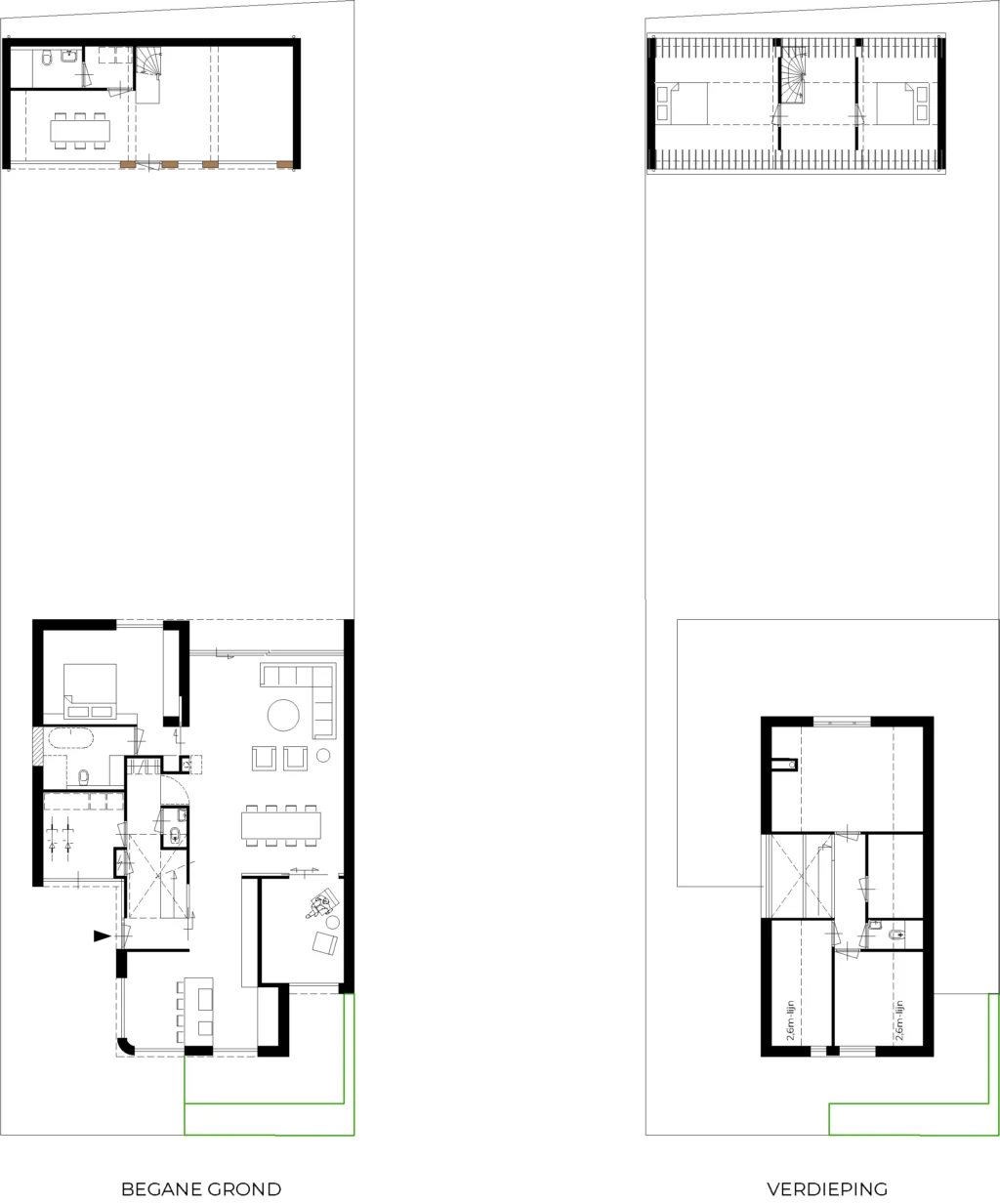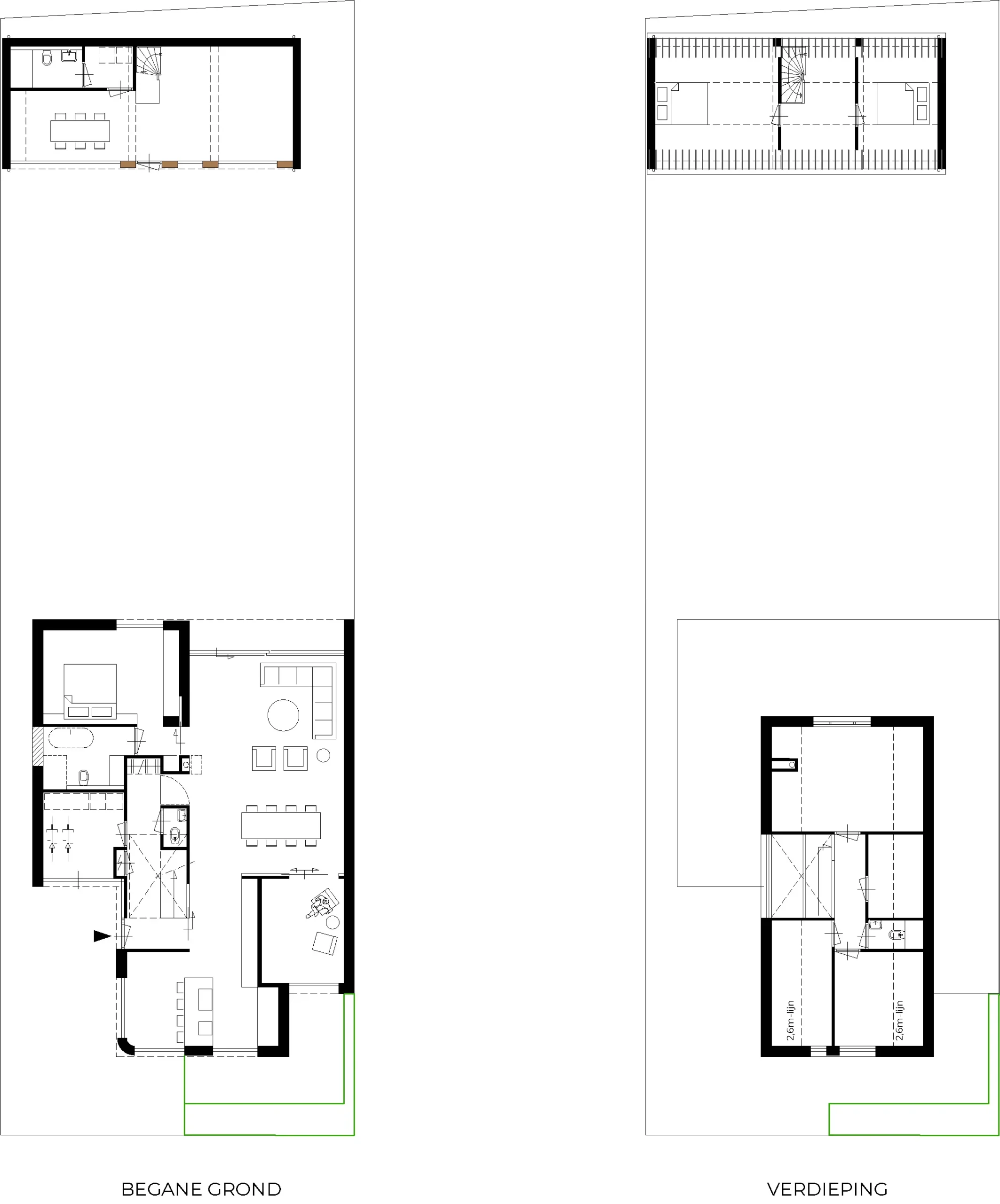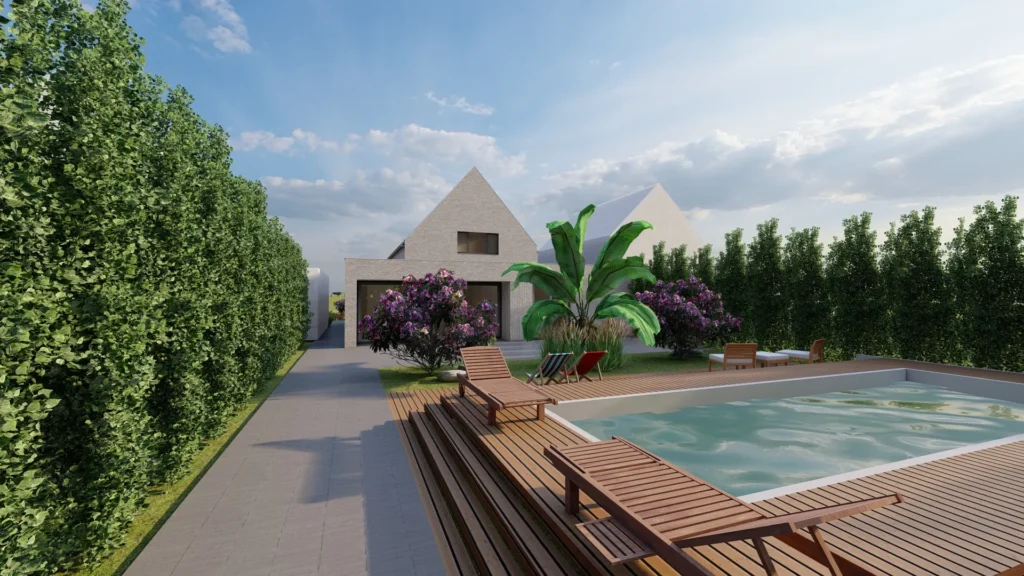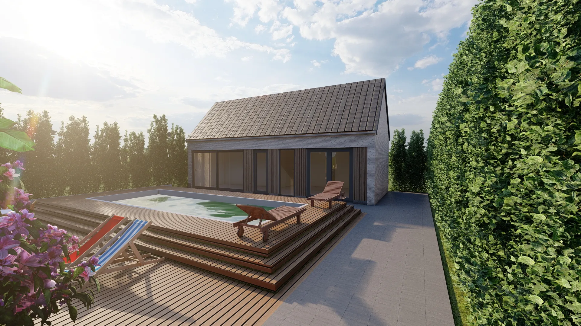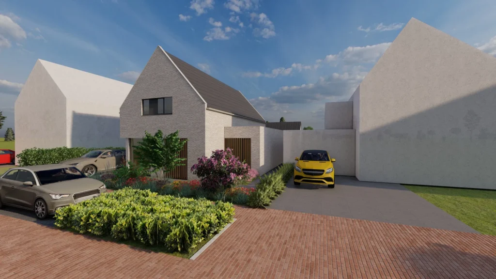 De wens van de opdrachtgevers was een lichte woning met een levensloop programma op de begane grond, een compacte verdieping en een ruim bijgebouw dat tevens dienst kan doen als poolhouse, berging of gastenverblijf. De wens naar een “lïchte woning” is vorm gegeven met een fraaie, slanke baksteen in een lichtgrijze kleur. De woning krijgt daarmee een eigen karakter tussen de beide buurpanden welke van gevelstucwerk zijn voorzien. Fraaie details in de voorgevel zoals de rond gemetselde hoek aan de entreezijde en het houten raster voor de chill-room geven een bijzondere expressie aan de woning.